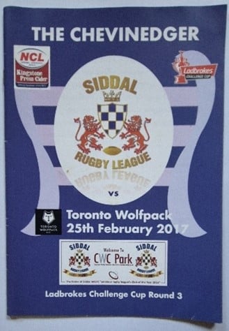Perhaps Siddal’s biggest RFL Challenge Cup game came in the third round of the competition in 2017 when they welcomed the newly established Canadian Rugby League side, Toronto Wolfpack, to Chevinedge. The game, which was the Wolfpack’s first competitive game, attracted significant interest and was covered live on the BBC. It attracted a sizeable crowd of over 1000 to Chevinedge. Siddal led 6-4 into the second half but late tries gave Toronto the tie by 14-6.